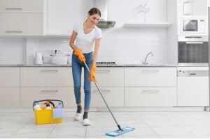Wet sanitisation in kitchens, bathrooms, or high-traffic zones