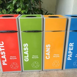 Before choosing a recycling bin size, assess how much of each type of recyclable your office generates — paper, plastics, cans, organics, etc. Offices with more printing will need larger paper bins, while shared kitchens may require bigger compost or soft plastic bins.