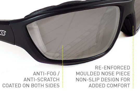 - Panoramic Vision with a soft moulded EVA positive seal to maximise protection in dusty environments.