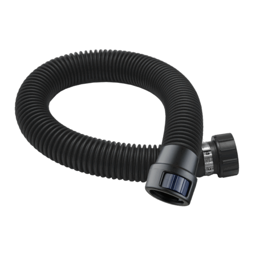 Heavy duty rubber hose to connect PAPR unit to the full-face mask.
