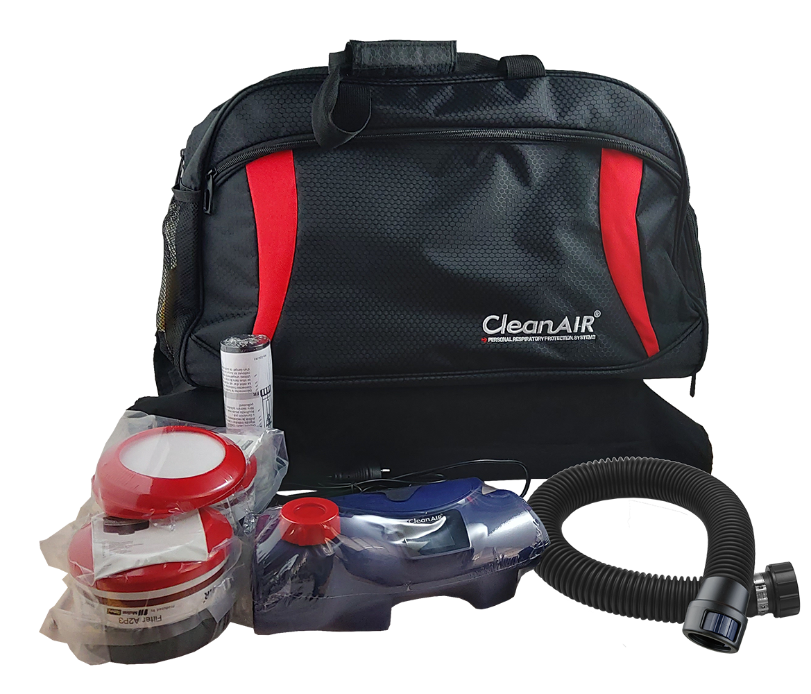 The CleanAIR PAPR Agricultural Spraying Kit with no mask is ready to pair with your favourite DIN thread full face respirator.