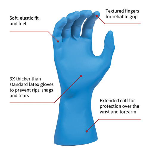 Added protection: With an extended cuff, these gloves offer workers enhanced forearm and wrist protection.
