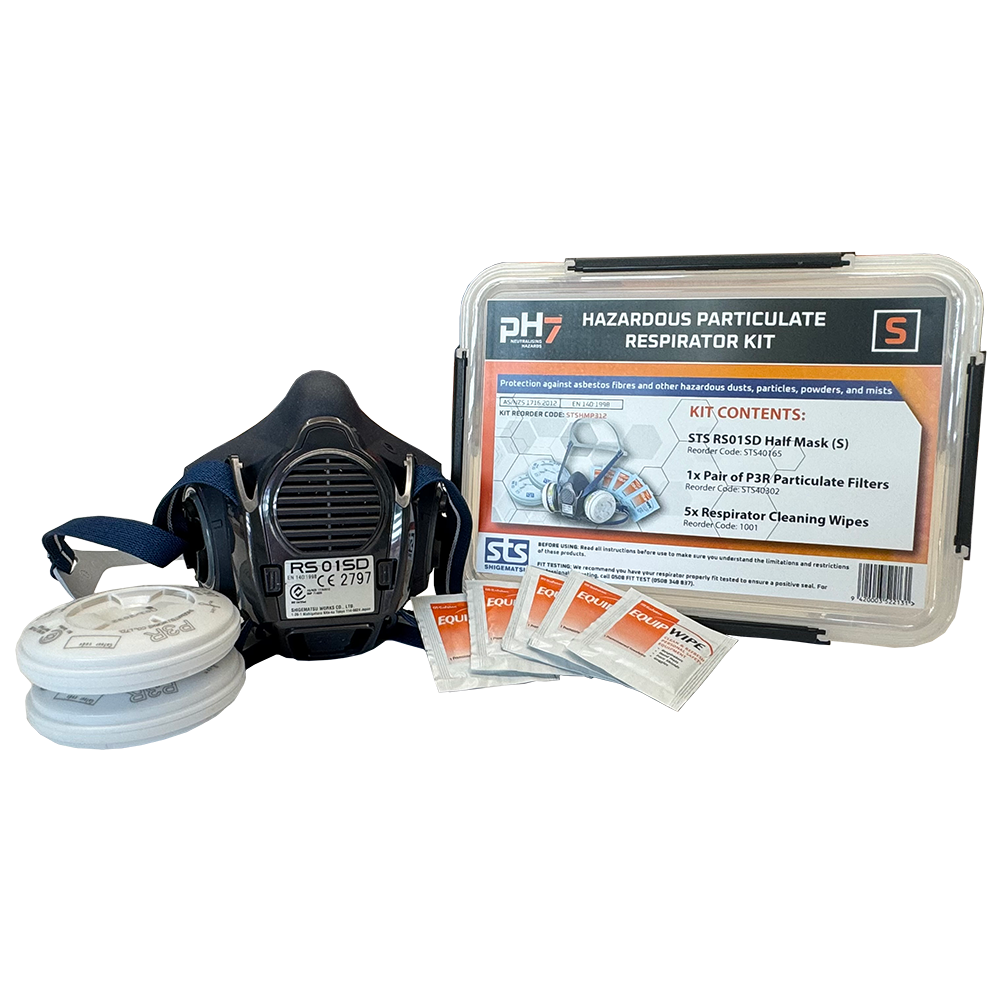 The RS01SD Hazardous Particulates Respirator Kit includes everything you need to when working with hazardous particulates including dust such as asbestos, silica, sawdust and mists that can contain bacteria or viruses.