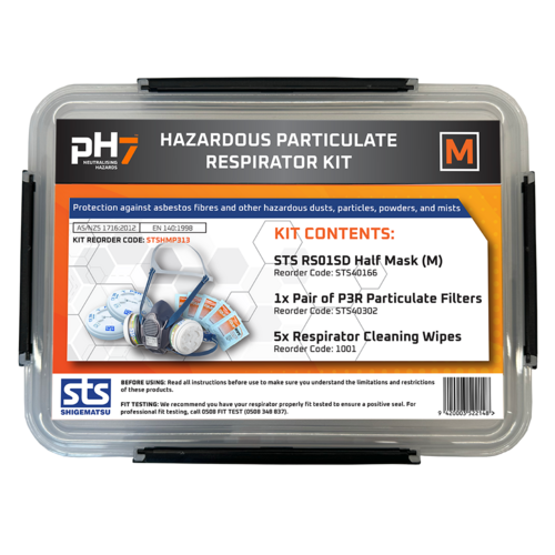 The RS01SD Hazardous Particulates Respirator Kit includes everything you need to when working with hazardous particulates including dust such as asbestos, silica, sawdust and mists that can contain bacteria or viruses.
