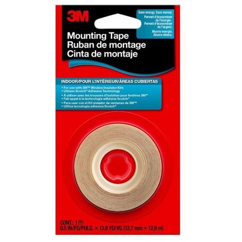 Scotch Indoor Window Film Mounting Tape is a double-sided adhesive tape made for use with 3M Indoor Window Insulating Kits. Easy to apply with a ready-to-peel liner. The double-sided Scotch tape creates a strong bond between the surface, tape and film, securing film in place all season long. 12.7mm x 12.6m roll